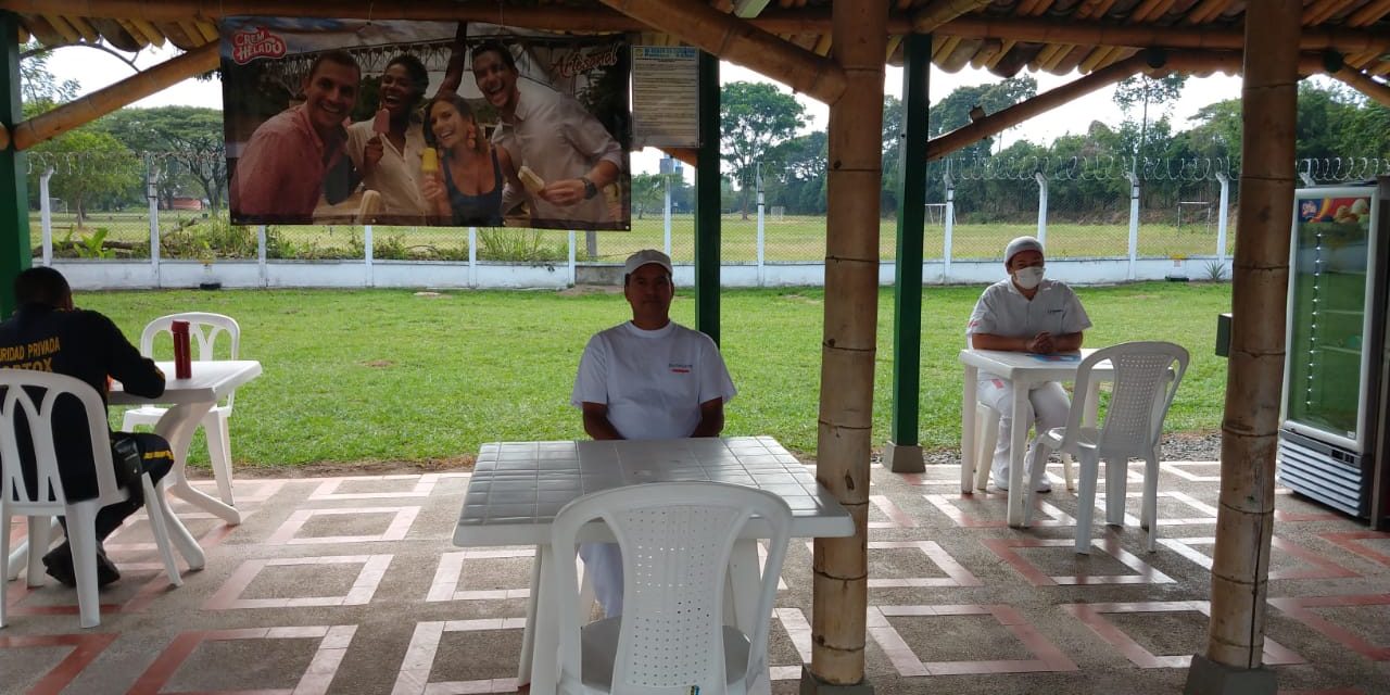 Para tomar refrigerios se estableció una distancia de 1,5 m entre cada uno de los colaboradores. Las mesas se encuentran separadas entre sí y limitada la cantidad de sillas por mesa.